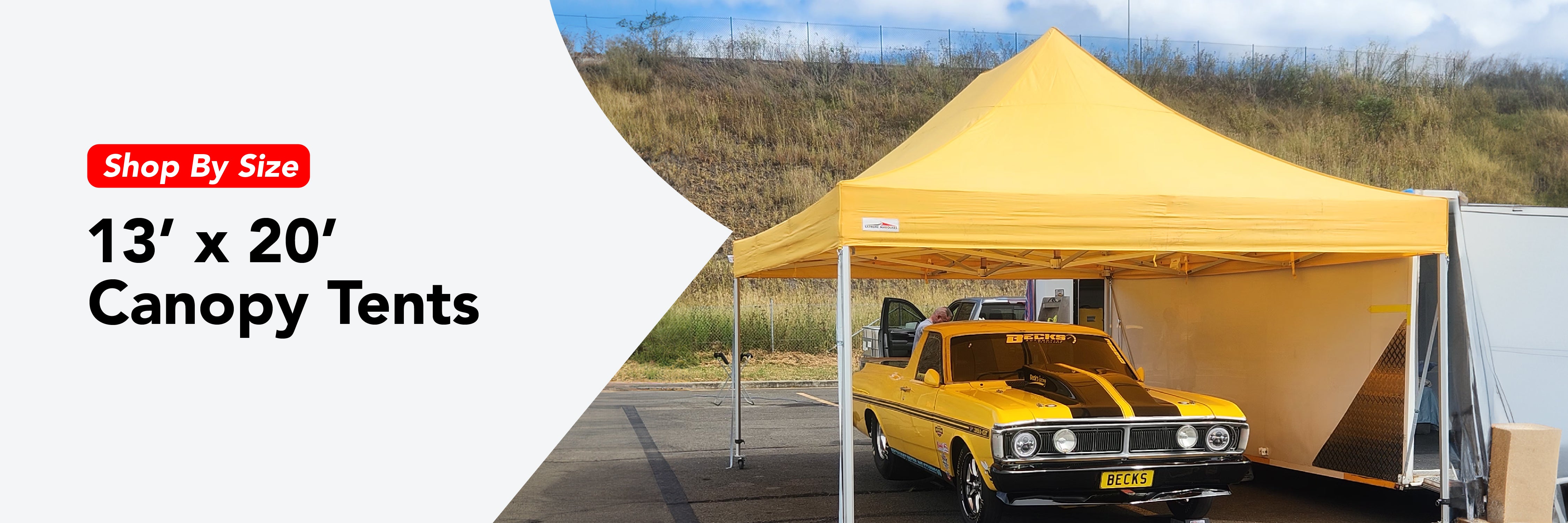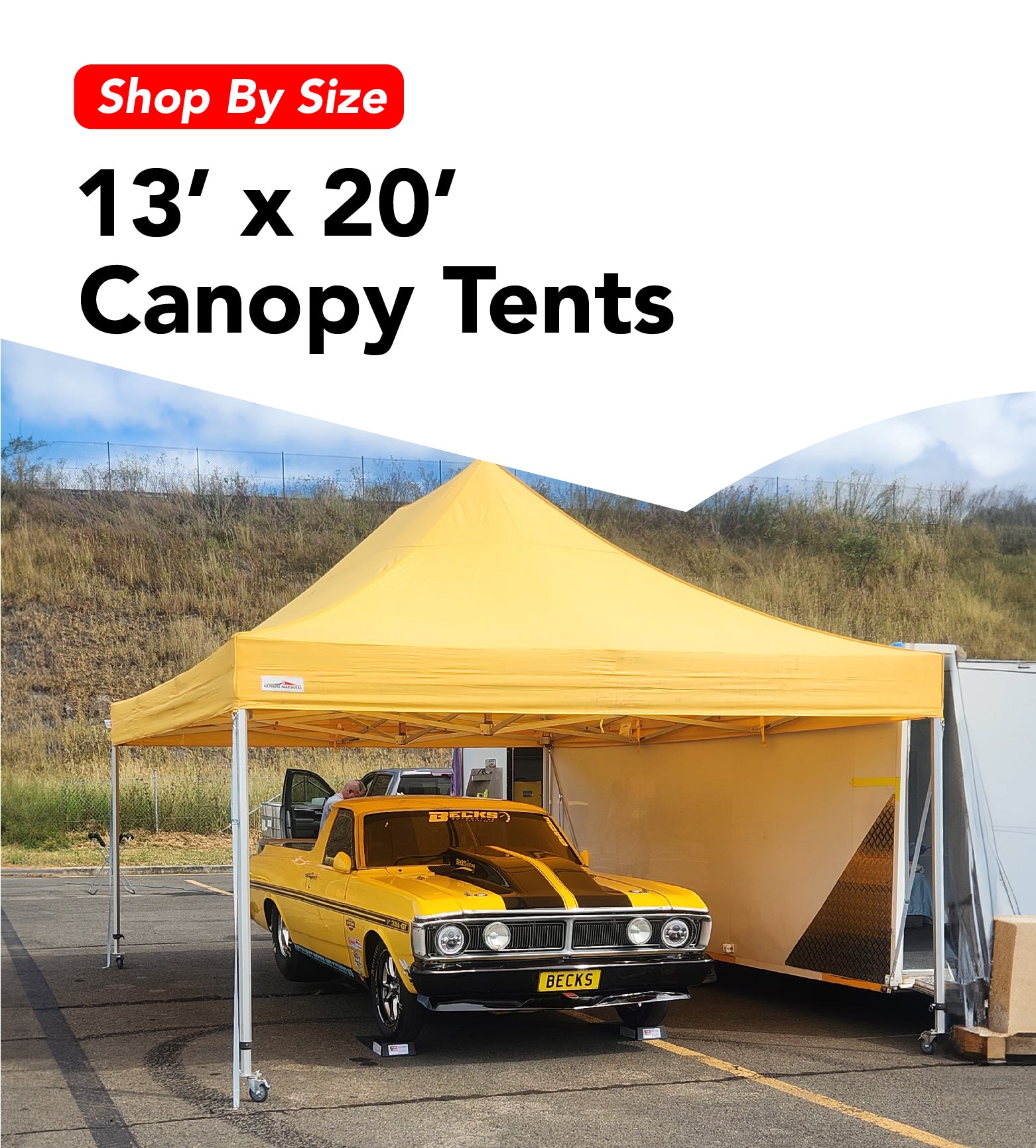 Our 13x20 canopy tents deliver expansive commercial-grade shelter designed for businesses and event professionals across the United States. With a generous 260 square feet of covered space, this size is perfect for larger vendor booths, corporate activations, outdoor expos, fairs, and market installations where space and branding matter. Built with rugged, heavy duty aluminum frames and premium weather-resistant canopy fabrics, these pop up tents are engineered for reliable strength, stability, and long-term performance. Available in plain tent options for versatile functional shelter or fully custom printed canopy tents with high-impact branded graphics, this collection helps you create standout presence and professional presentation at any event.