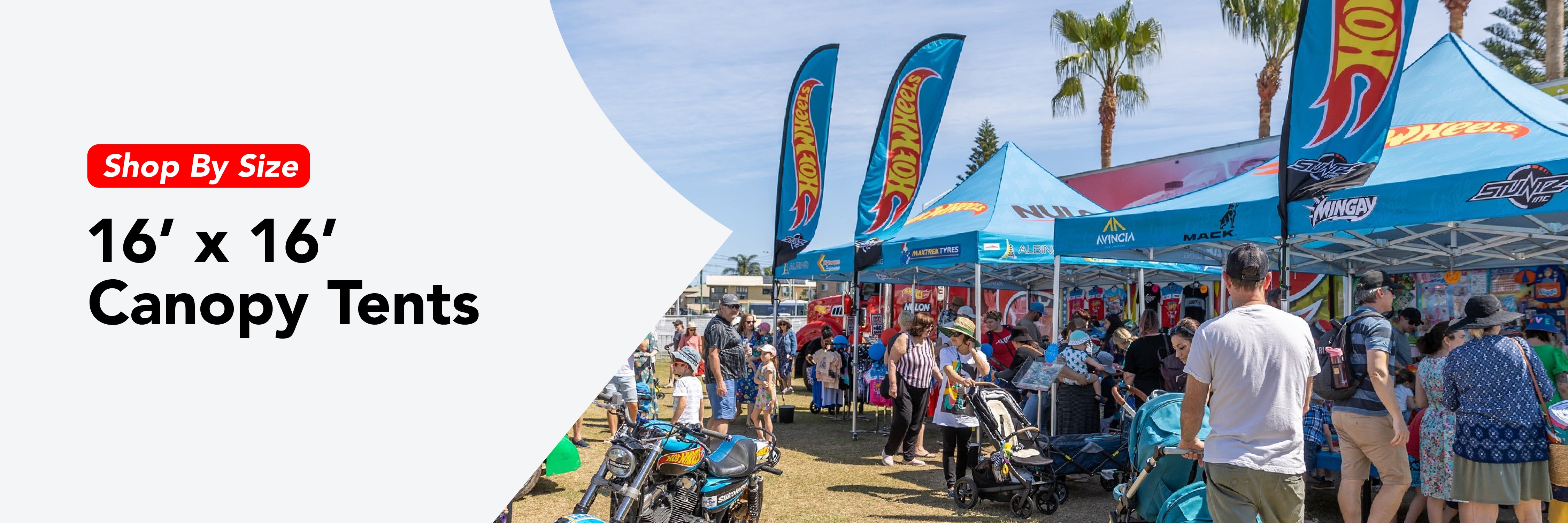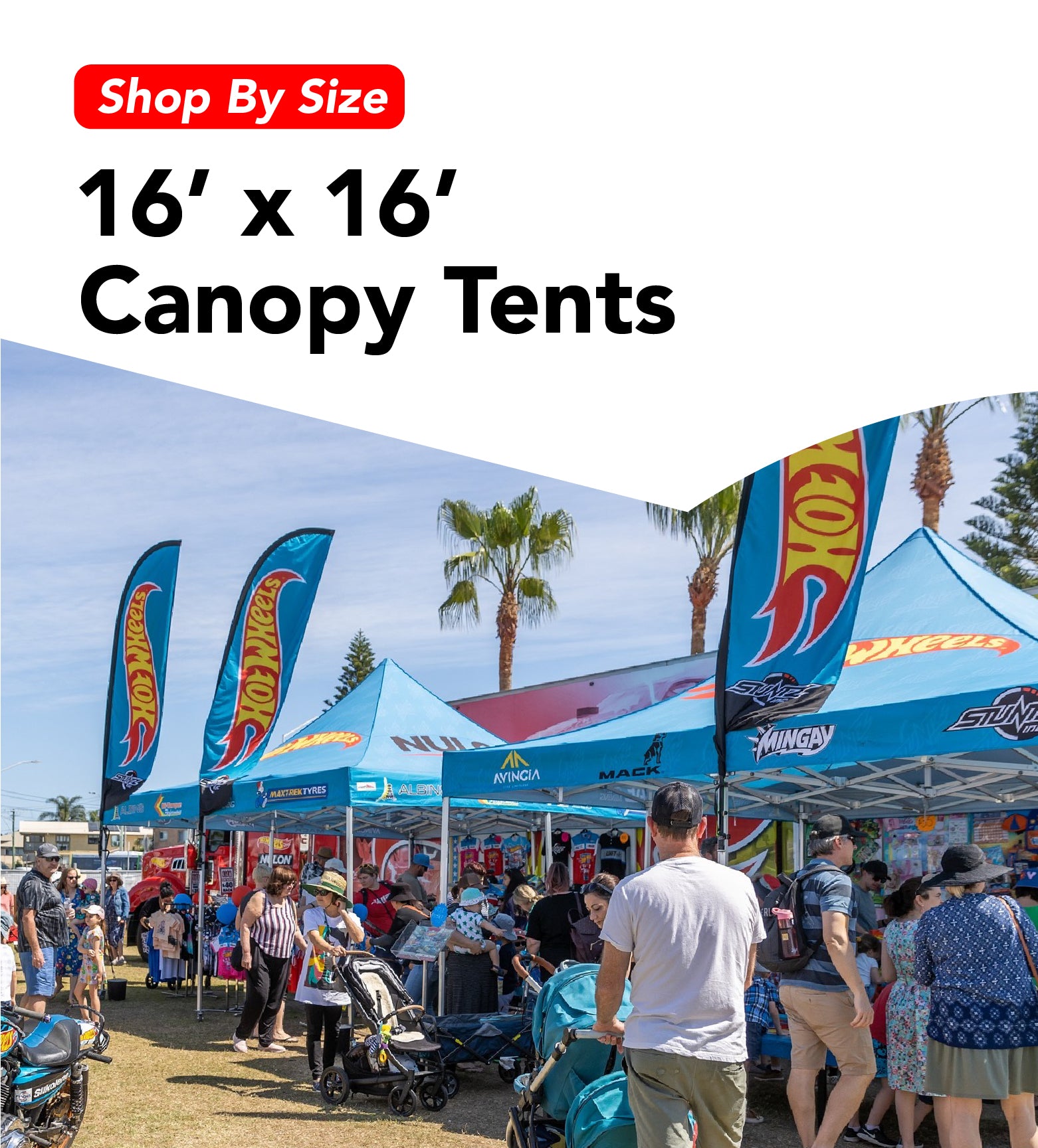 Our 16x16 canopy tent delivers 256 sq. ft. of premium covered space, making it the perfect pop up canopy for trade shows, outdoor events, vendor booths, and corporate promotions across the USA. Built with a heavy-duty aluminum frame and durable, weather-resistant fabric, this commercial canopy tent is engineered for long-term performance and stability. Ideal for brands that need visibility, our custom canopy tents feature vibrant, high-resolution printing to maximize exposure. Whether you need a reliable event tent for festivals or a professional outdoor canopy for business activations, this versatile solution provides strong shelter and standout branding at every event.
