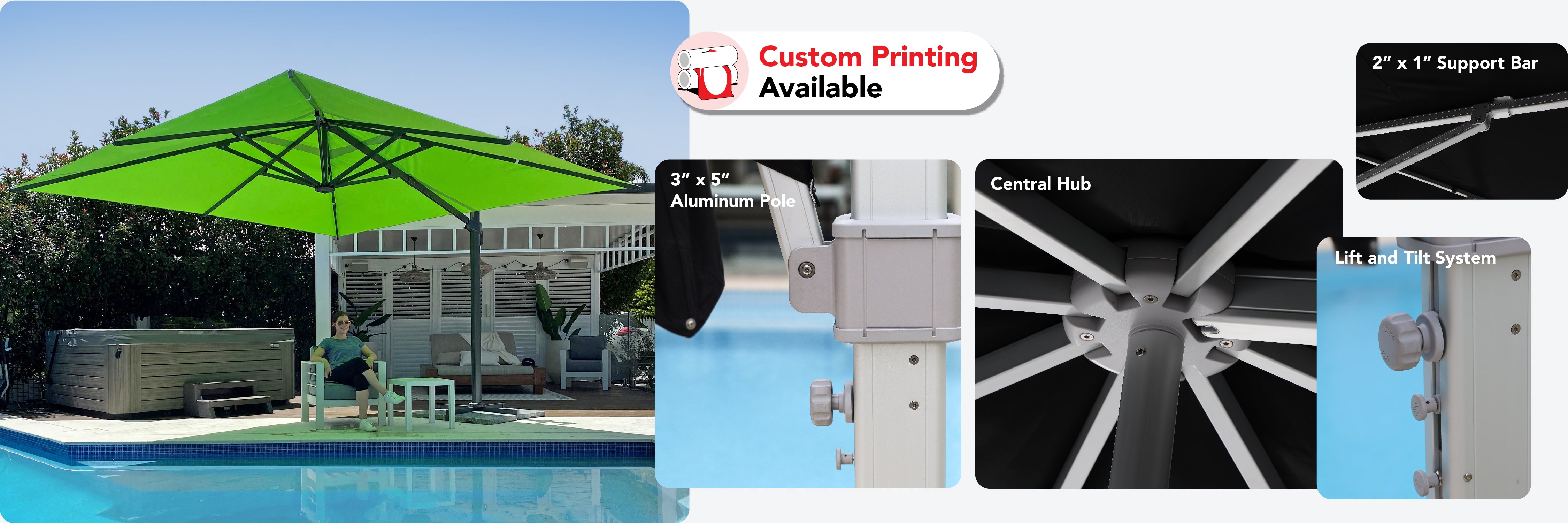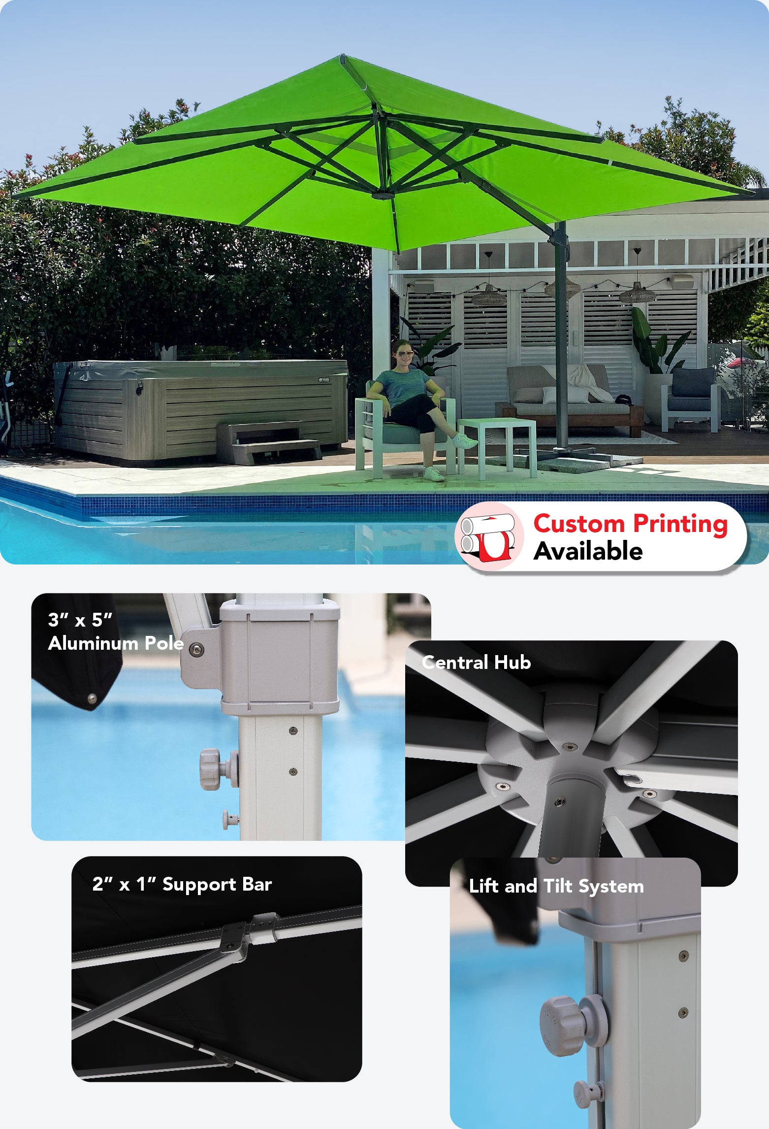 Shop cantilever umbrellas for patios, pools, and outdoor spaces. These side-post umbrellas are durable, stylish, and include free shipping on all orders.