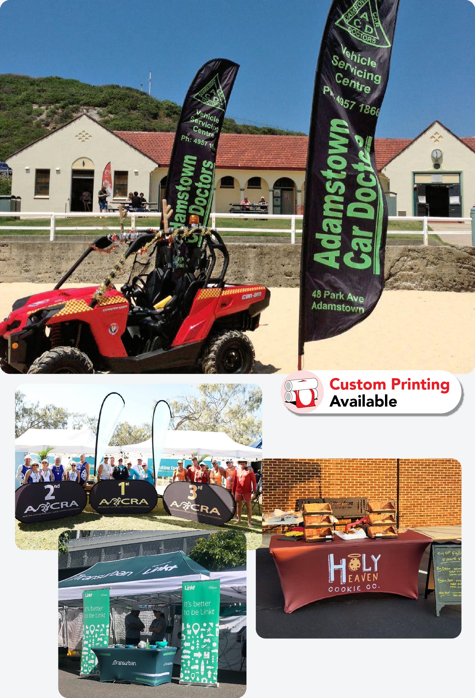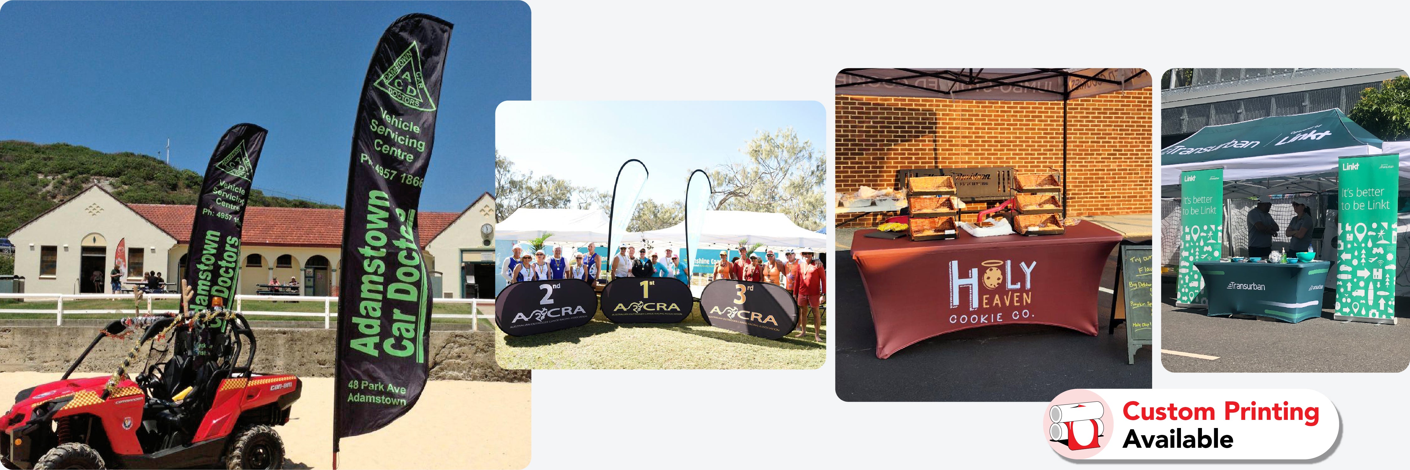 Looking to up your branding game? Extreme Canopy’s signages are a must-have in your promotional toolkit. From our small and practical pod pop banners to our popular feather and teardrop ranges of flag and pull-up banners, we provide vibrant and eye-catching branding solutions for businesses of all sizes and industries.