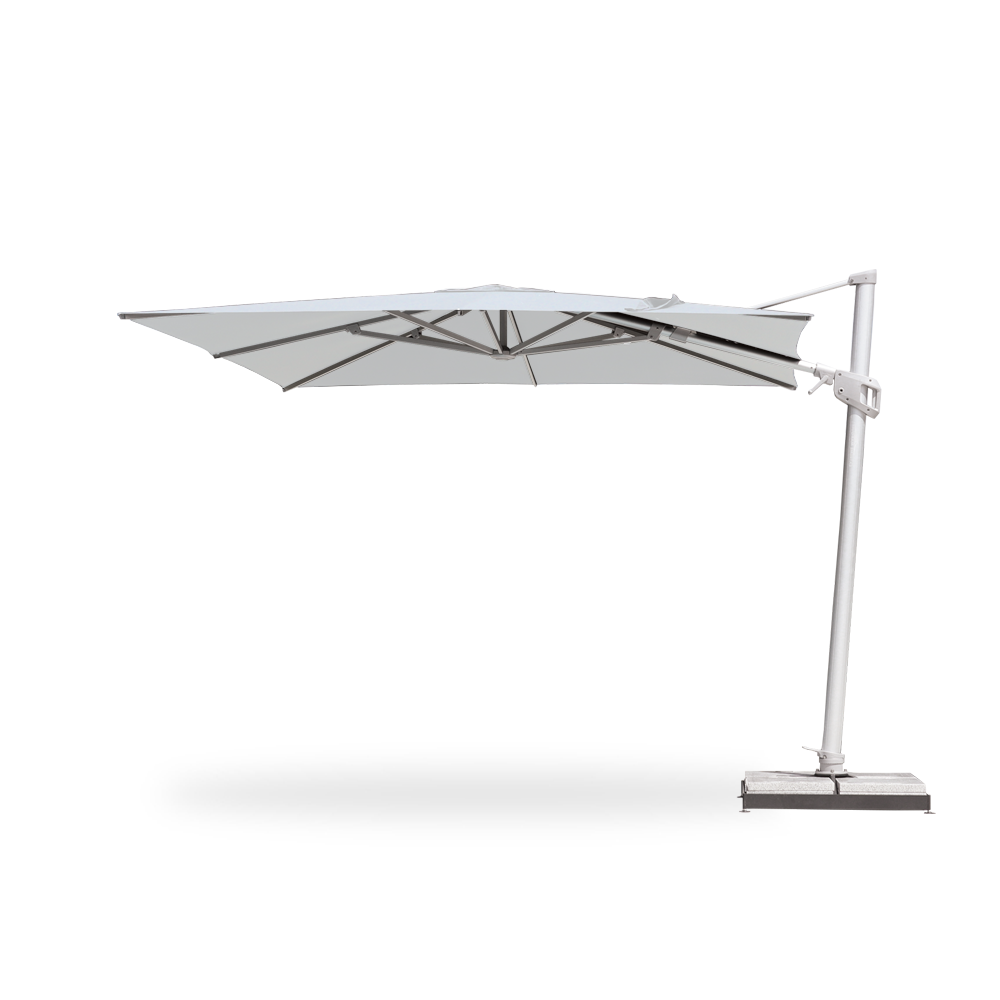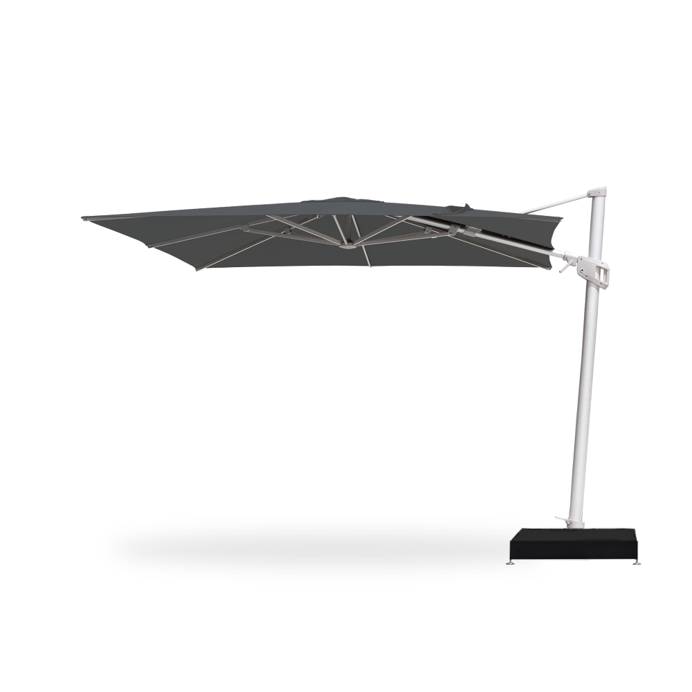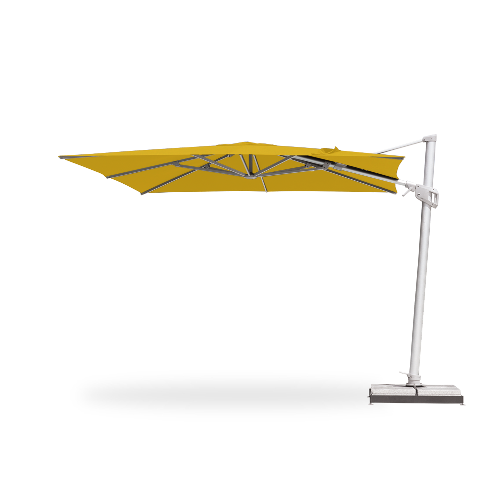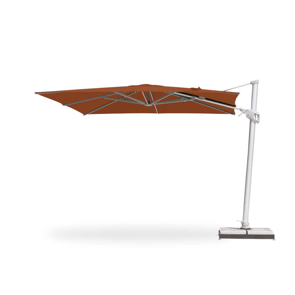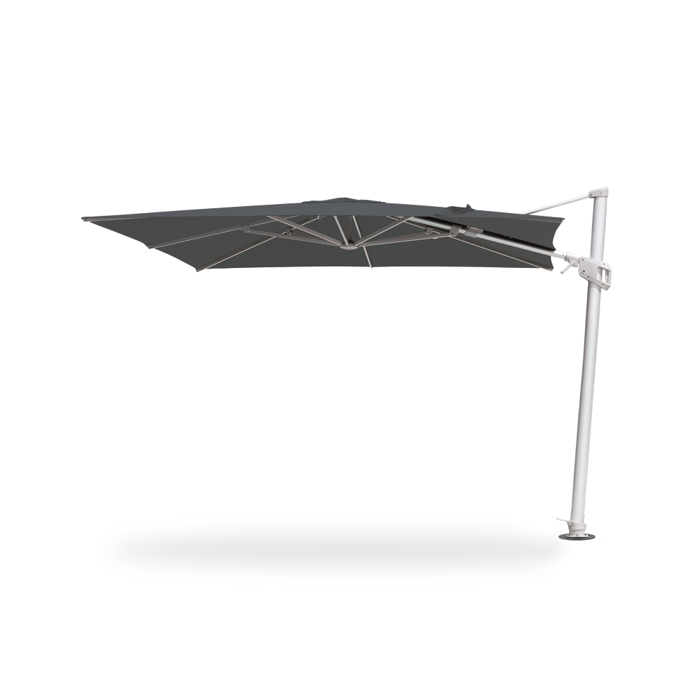 Side-mounted with 360 degrees rotation, Cantilever offers flexible shade coverage exactly where needed. The tilt functionality further enhances the usability, allowing the umbrella to adjust to various angles for optimal sun protection throughout the day.