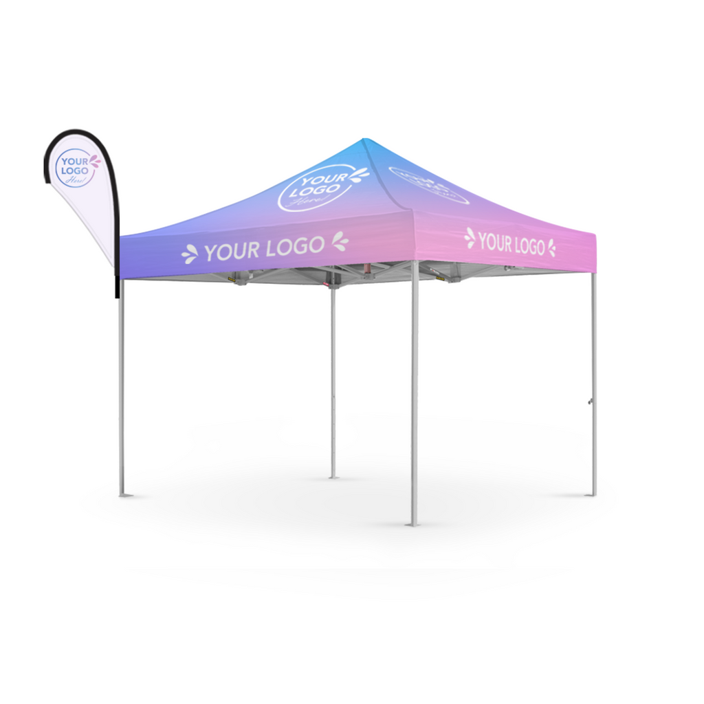 Take your branding to the next level with the 10x10 Custom Canopy Banner Boost Package from Extreme Canopy. This complete promotional solution includes a fully custom-printed canopy top and a high-impact teardrop flag that draws attention from every angle. Built on a commercial-grade frame, this package is ideal for trade shows, expos, markets, and outdoor events. With quick setup, brilliant full-color printing, and exceptional durability, this canopy package is designed for maximum brand exposure. Enjoy free shipping, fast production times, and extended warranty coverage on every order.