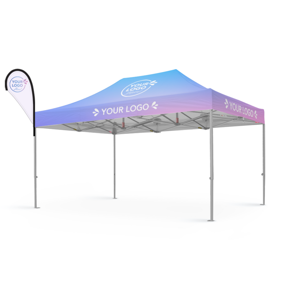 The 10x15 Custom Canopy Banner Display Package is designed for brands that want high visibility and professional presentation in one easy-to-use setup. This complete package includes a custom-printed canopy top and a teardrop flag to capture attention from a distance.
