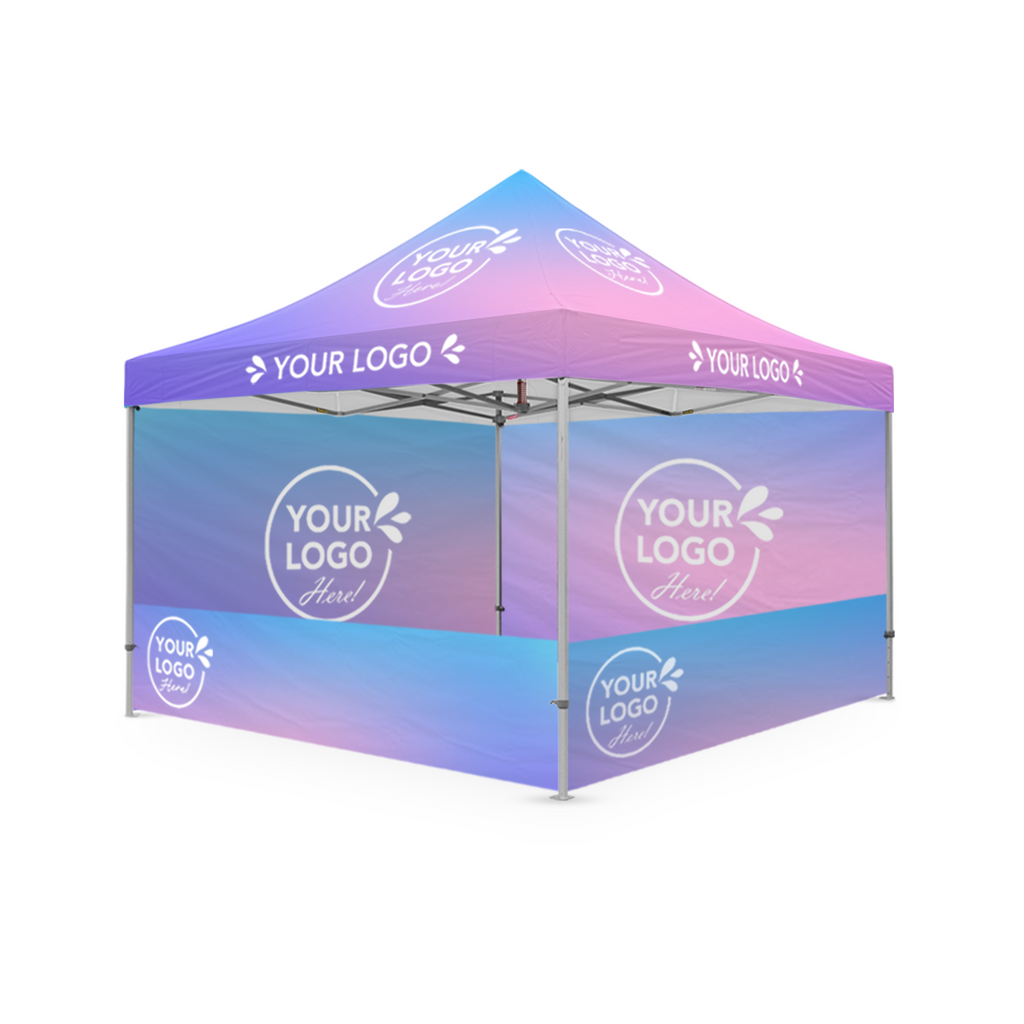 The 13x13 Custom Canopy Event Presence Package is crafted for brands that value interaction and visibility. Featuring a fully printed canopy top, full back and side walls, and two half-height side walls, this setup encourages open conversation while maintaining a structured, branded space. The larger 13x13 footprint provides additional room for displays or guest flow, making it ideal for trade shows, markets, and pop-ups. All elements are printed in-house using high-resolution dye sublimation for vivid, long-lasting graphics. Built on a commercial-grade frame and backed by free shipping and fast turnaround.