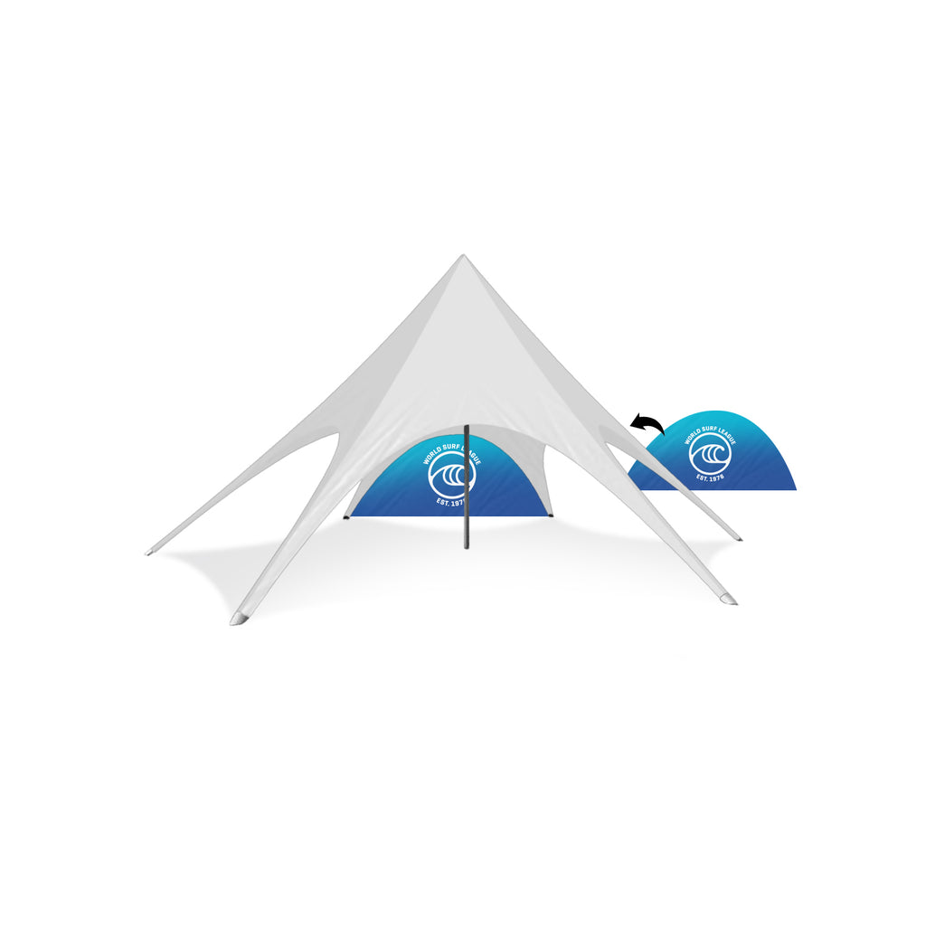 The 33ft Star Shade Custom Wall enhances your Star Shade Tent with personalized branding and increased weather protection. Featuring a custom-printed design, it boosts visibility while providing additional shade and wind resistance. Perfect for festivals, trade shows, and outdoor promotions. Enjoy free shipping. Customize yours today!