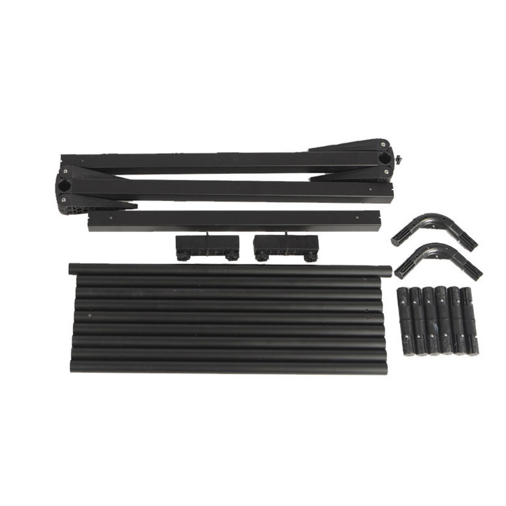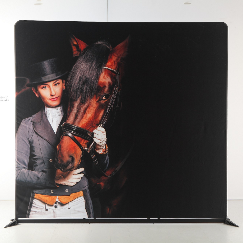 Package Includes: 230GSM Polyester Stretch Fabric with Zips, Double Sided Custom Printing and Hardware (including frame and feet).