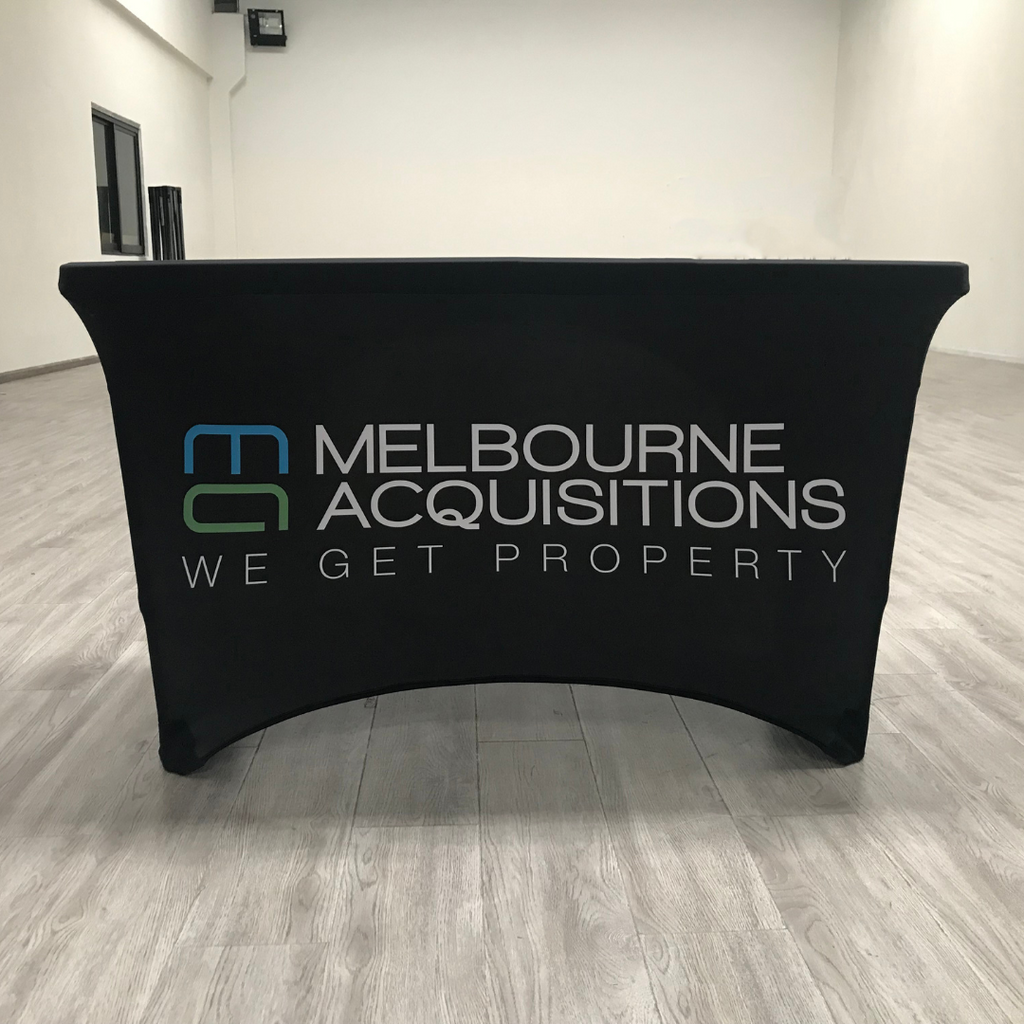 Package Includes: Custom Printed Stretch Fabric Table Cover ** TABLE NOT INCLUDED**